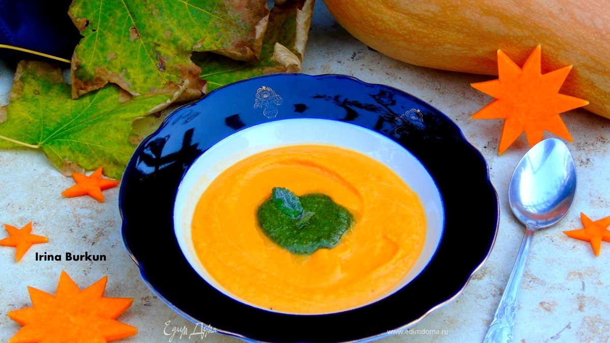 Попробуйте, вроде обычный тыквенный суп, но который совсем по-другому звучит с соусом песто из шалфея.