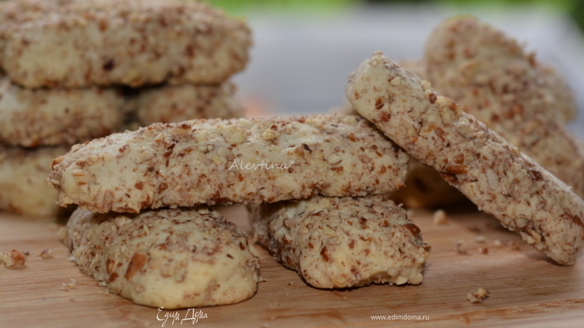 Выложить вторую часть пекана на тарелку. От теста отщипывать примерно по кусочку теста 1 ст.л., например, скатывать тонко бревнышком и прокатывать по молотым орехам. Складывать на противень с бумагой для выпечки на небольшом расстоянии друг от друга. Так проделывать с каждым кусочком теста. - Шаг 5