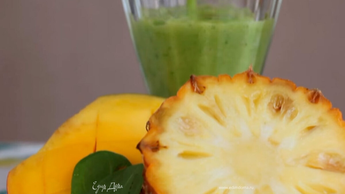 Сложить ананас и манго в блендер. Добавить шпинат и йогурт, взбить до однородности.