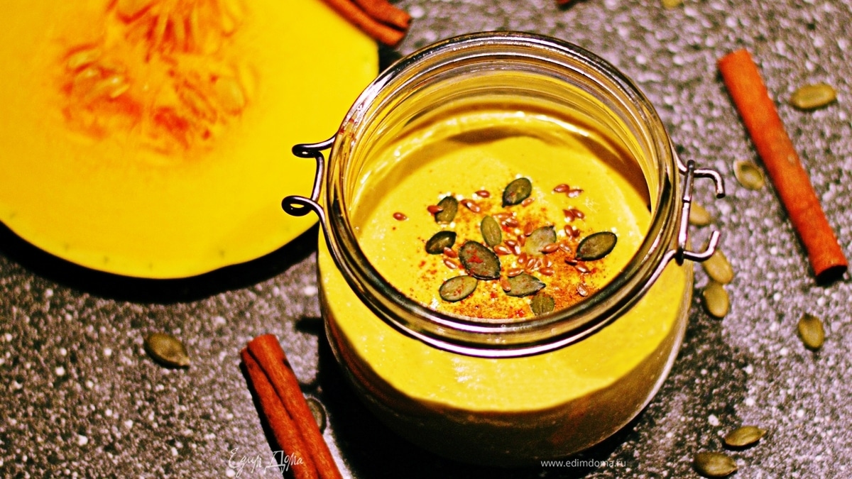 Очень нежный ароматный кремовый десерт, приятно полезный для приверженцев здорового питания и неожиданно вкусный для гурманов-сладкоежек. Он отлично насыщает и восстанавливает силы, и легко заменит ужин, а подавать его можно как в горячем, так и в холодном виде. Вообще рецепт очень многогранный, например: тыкву можно запечь, за основу взять миндальное молоко с большим количеством воды, добавить свежий имбирь вместо молотого – и вместо крема получается теплый пряный напиток, идеальный для холодных осенних вечеров.