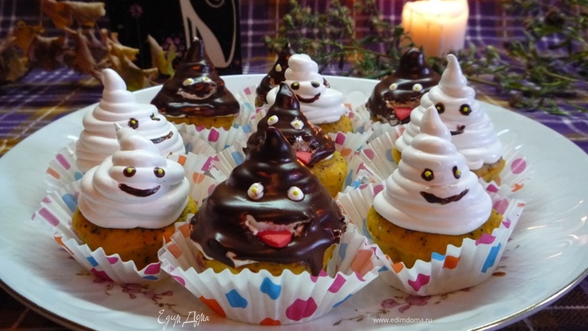 Тыквенно-маковые кексы с воздушным кремом "Веселые привидения"