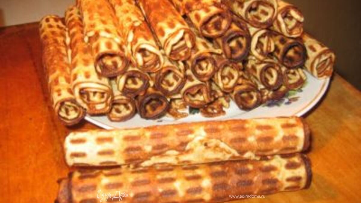 - ПодготовкаМаргарин растопить. Все ингредиенты взбить миксером, в том порядке, в котором они перечисленны. Трубочки выпекать в вафельнице. Каждую трубочку сразу, как достаём из вафельница скручиваем. Начинить кремом на ваш вкус. Бон аппетит!