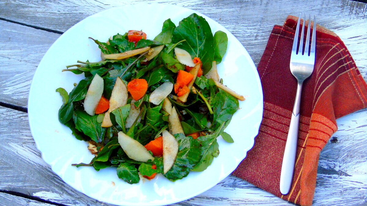 Теплый салат с тыквой и грушей