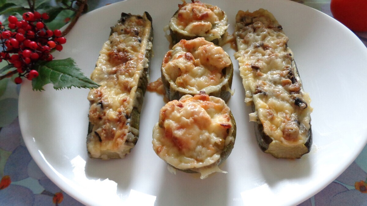 Фаршированные лодочки из цукини с двумя видами начинки