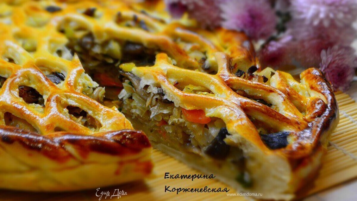 Дрожжевой пирог с капустой и вешенками