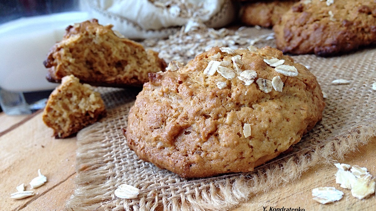 И у меня сегодня день печенья )))))). Вот, Юля, и твое уже остывает ))). Одну попробовала — чудесный вкус, разлом и мягкость внутри. Муку брала кукурузную и цельнозерновую пополам. Добавила Кэроб и хлопья не измельчала. Спасибо! 💐