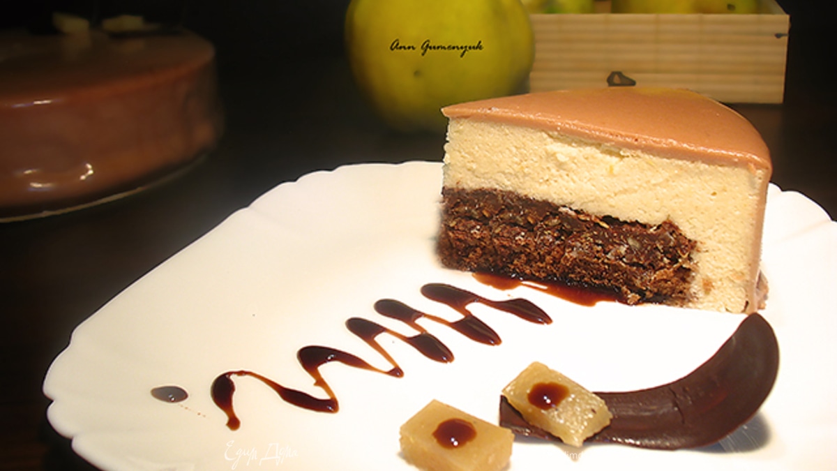 Готовила торт дважды (что мне не свойственно), первый раз с глазурью на молочном шоколаде, а второй раз сделала айвовую глазурь. Второй вариант мне понравился больше. В шоколадном варианте преобладал вкус шоколада, и хотелось большей сбалансированности вкуса. Даю рецепт с шоколадной глазурью, т.к. она на фото. Фото второго тортика сделать не успела.