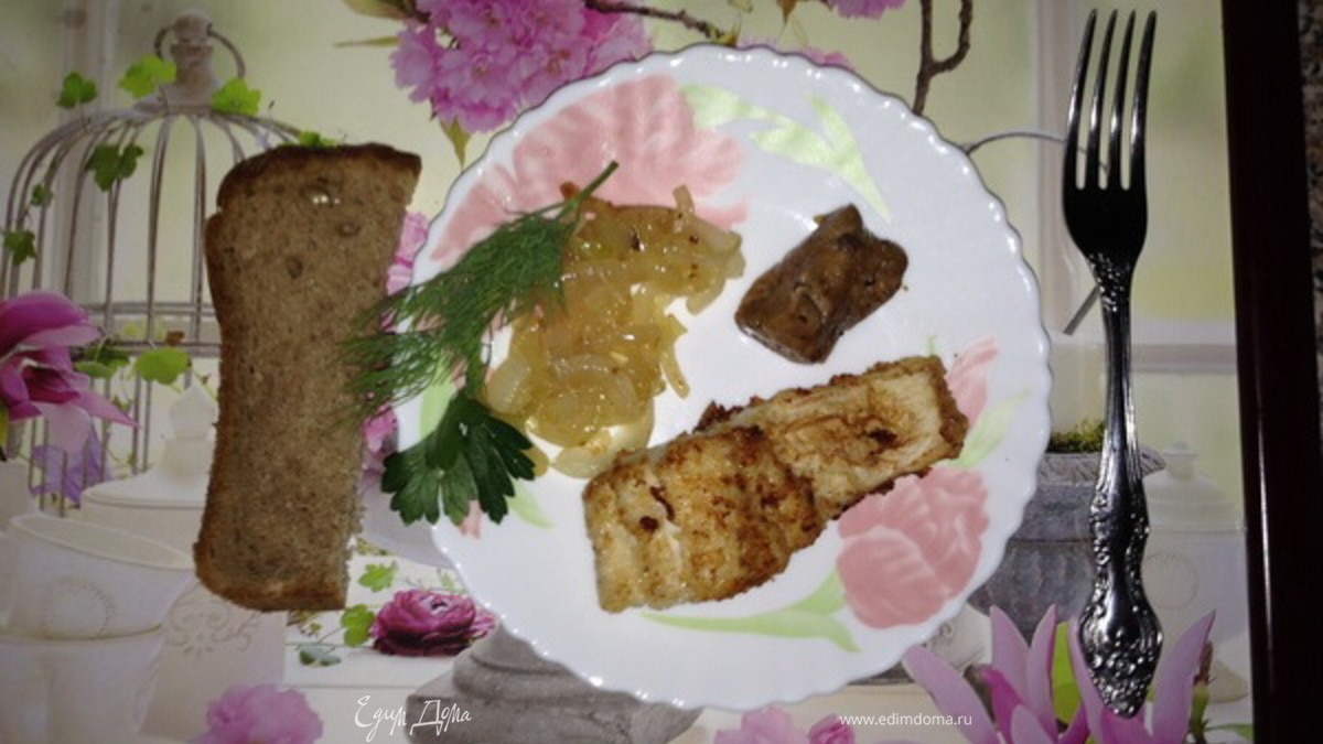 Пока филе готовится, нарезаем лук. После приготовления рыбы в оставшееся масло высыпаем лук (солить не надо). Припускаем, помешивая до золотистого цвета. Но не пережариваем, а то будет горчить. - Шаг 8