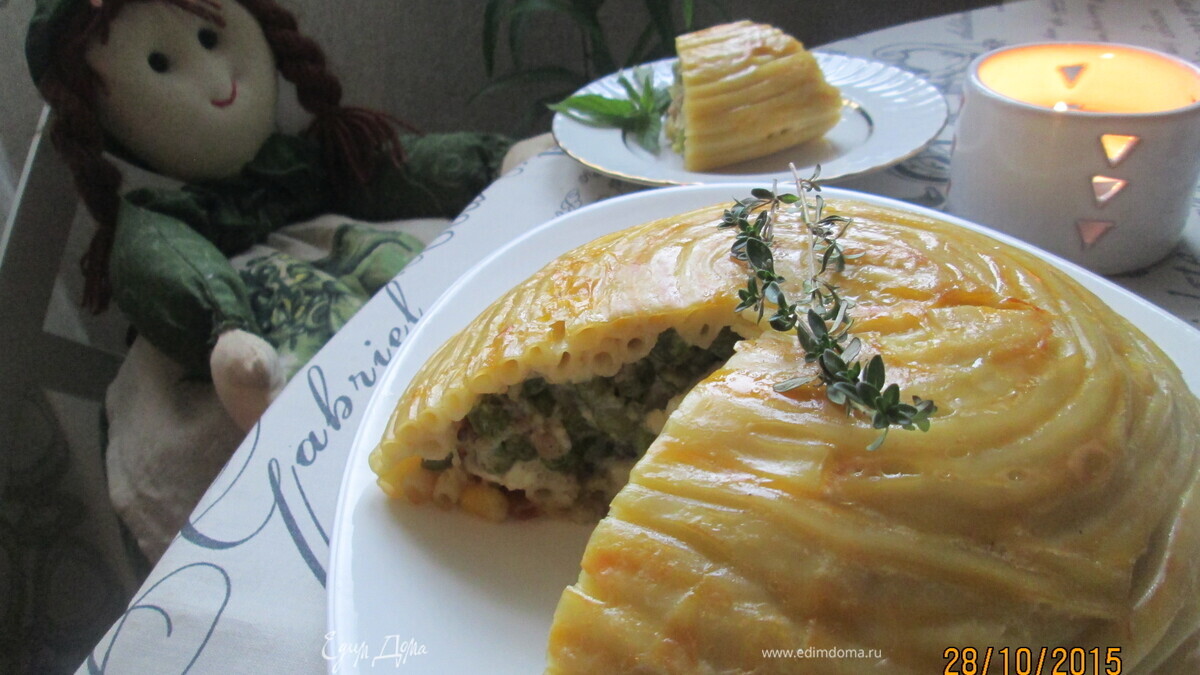 Листочек с этим рецептом уже много лет живет в моем блокноте, помнится, я взяла его из журнала "Кулинарный практикум". В начинку я внесла свои коррективы, добавив горсть замороженной кукурузы, грибов и мясной фарш. Еще у меня вместо моцареллы - фета. Для начинки купола столько вариантов — такой полет для фантазии! Очень рекоменду — это еще и так вкусно.