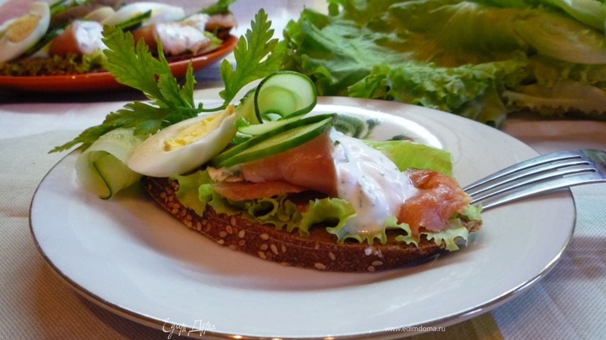 Датский открытый бутерброд с лососем
