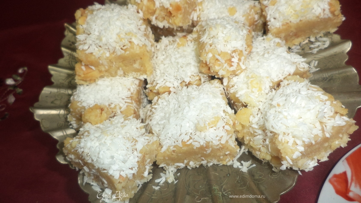 Ножом разрезать затвердевшую массу на кубики и обвалять их в оставшейся кокосовой стружке. - Шаг 5