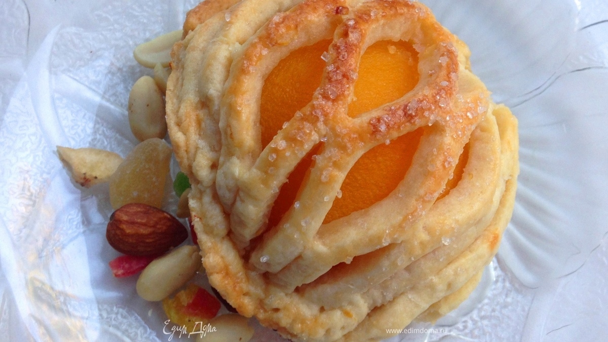 Их можно сделать и из покупного слоеного теста, но песочное тесто с цитрусовой ноткой прекрасно подчеркивает нежный вкус персика и начинки.
