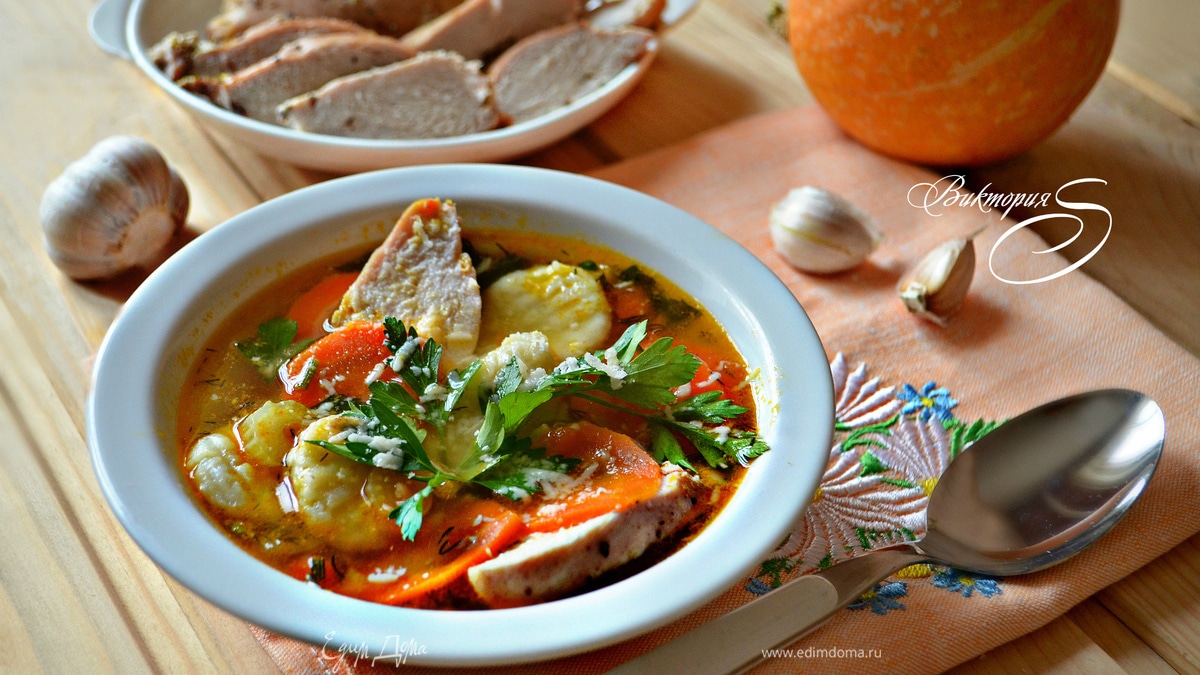 Даже не знаю, что сказать... СУП такой насыщенный по вкусам и цвету! И овощи, и ньокки, и запеченная курочка - так хорошо всё подобрано вместе! Но и работы, конечно, много... Или ты просто наколдовала такую вкуснятину?! pooh_lol
