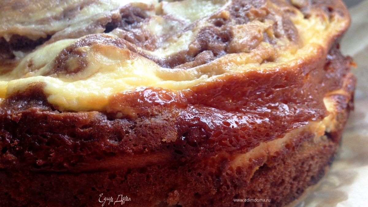 Творожную массу вылить сверху на тесто и хаотично несколько раз (без фанатизма) провести ложкой, чтобы начинка местами утонула.