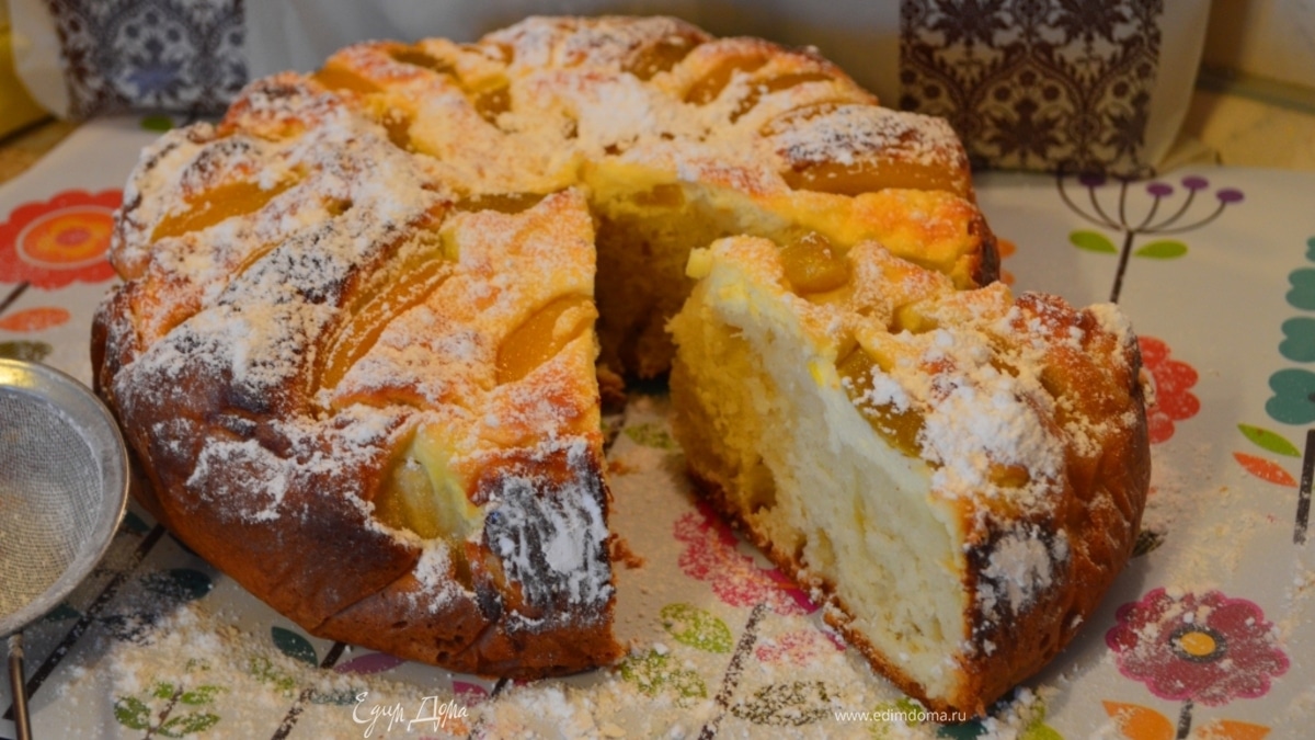 И снова я к вам с рецептом пирога "на каждый день". Этот вариант украшен консервированными персиками и творогом. Пирог получается очень вкусным, воздушным и легким как пушинка!