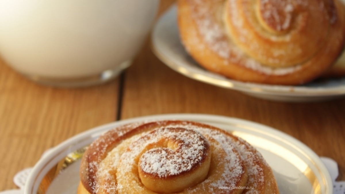 Большое спасибо за рабочий рецепт. Делал 2 раза. Первый раз порезал рулет на 10 частей и не сжимал в лепёшку (смотрите фото, где один выпеченец на тарелке). Булочки получились очень (очень -- подчёркнуто) пышные. Второй раз (смотрите фото всей братвы) разрезал рулет на 17 частей и сжал каждую в лепёшку. Булочки вышли не такие пышные. Как в первом, так и во втором случае булочки получились мягкими.