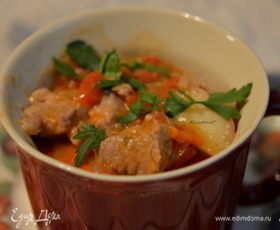 Готовое блюдо подаем, украсив зеленью по желанию. Приятного аппетита.