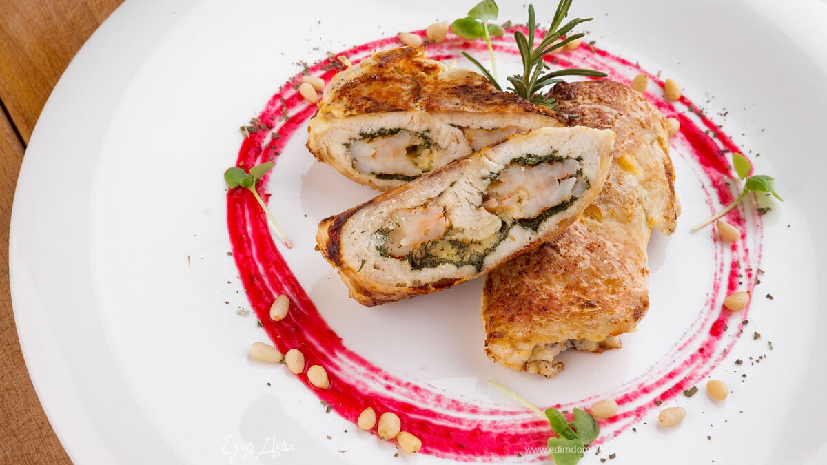 Куриная грудка, фаршированная креветками и сыром