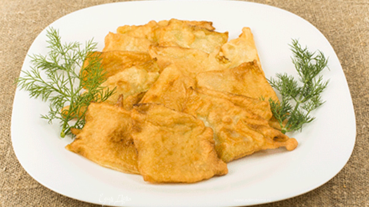 Готовим кляр — жидкое тесто, как на блинчики. - Шаг 5Наливаем в глубокую сковороду масло, нагреваем и кладем во фритюр листья капусты, предварительно их окунув в наш кляр. Излишек кляра перед погружением капусты во фритюр обтираем о края кастрюли