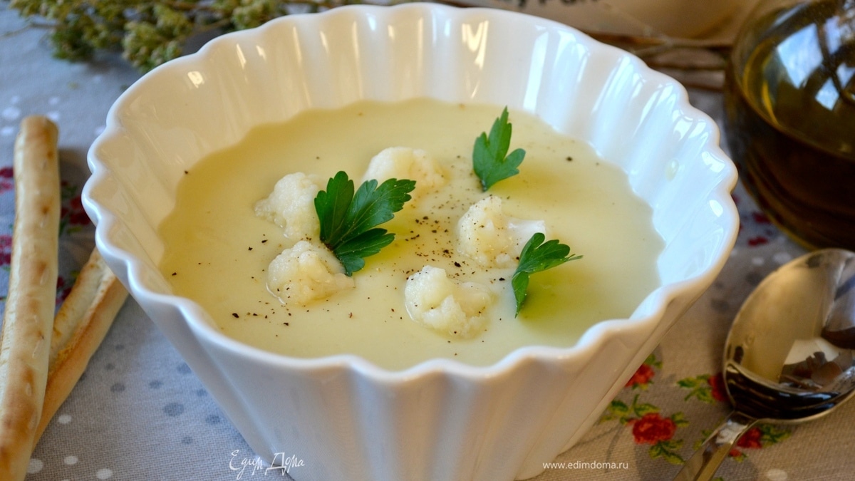 Прекрасный суп! Легкий в приготовлении и очень изящный (можно так сказать про еду?). По мнению мадам Дюбарри цветная капуста придаёт прекрасный белый цвет лицу и является источником молодости! В общем, не суп, а сплошное удовольствие!