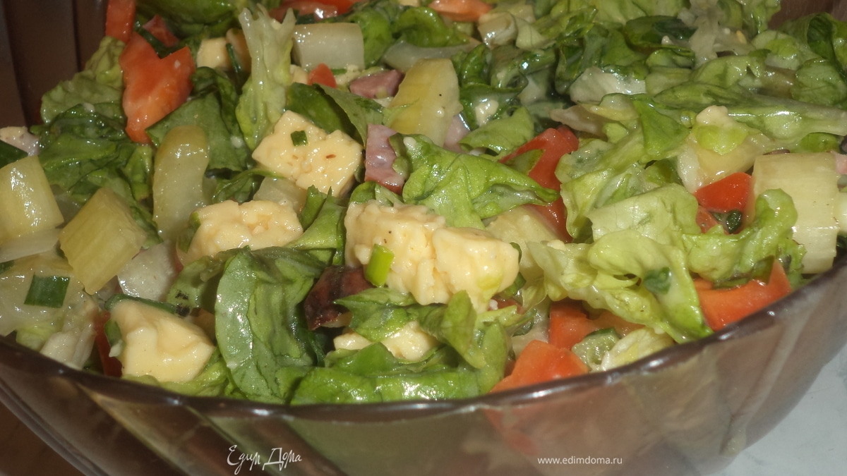 Салат с сыром, копченой ветчиной и домашним майонезом