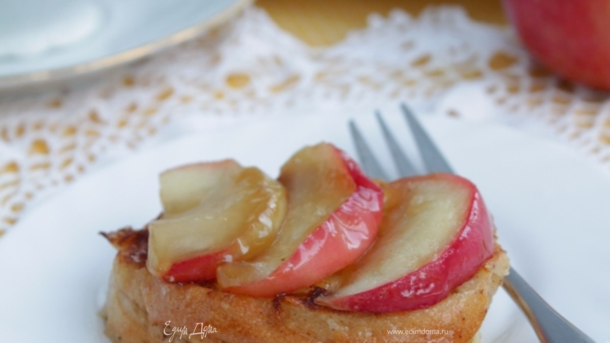 Выложите теплые дольки яблок на гренки, налейте ароматного чая и наслаждайтесь!