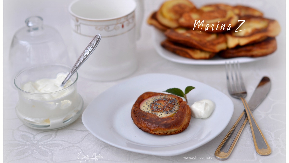 Пышные, сладкие оладушки, с приятной хрустящей корочкой, а внутри кисло-сладкое яблочко... Простой, но очень вкусный завтрак.