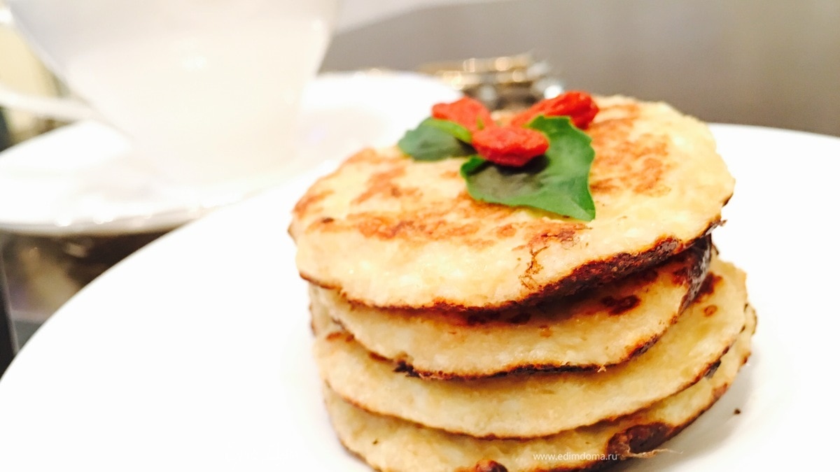 Кулинарной кисточкой промазать прогретую антипригарную сковороду и выложить на нее по столовой ложке творожную массу. Пропекать на мелком огне под крышкой пока не "схватится" и перевернуть. - Шаг 4