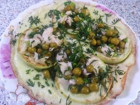 Не очень люблю жареное поэтому решила просто запечь в духовке одним куском, а потом нарезать. Все вроде не плохо, но вот суховато получилось хоть и добавила немного томатного сока. В следующий раз так точно делать не буду и нарежу помидор и сыр плавленый заменю на обычный твердый. Вообще идея хорошая, можно не только такие ингридиенты, а что-угодно.