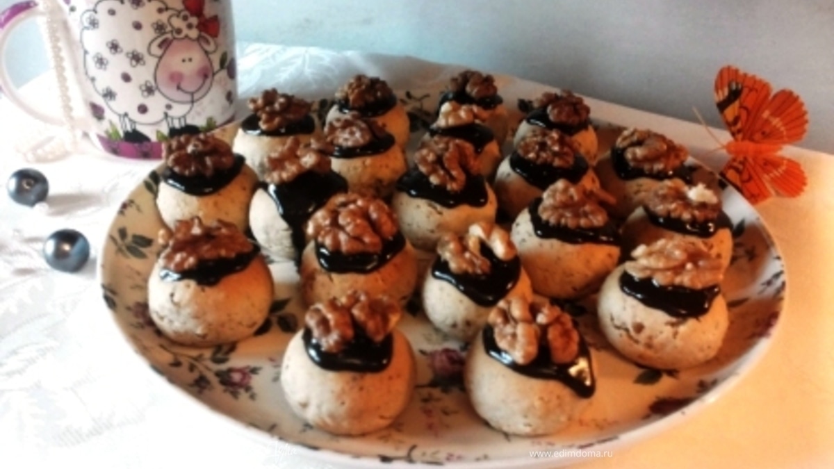 Остывшие прянички украшаем растопленным шоколадом и половинками грецких орех. Прянички получаются очень нарядные!