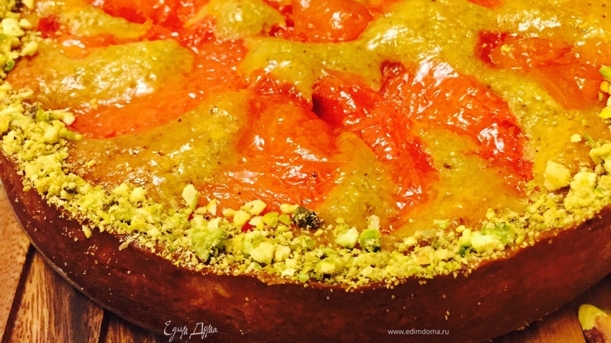 Для блеска покрываем наш и без того красивый тарт глазурью (просто покипятим абрикосовое варенье с водой) и посыпаем фисташками. Он такой сочный, грейпфрут с фисташками просто фантастично! - Шаг 15