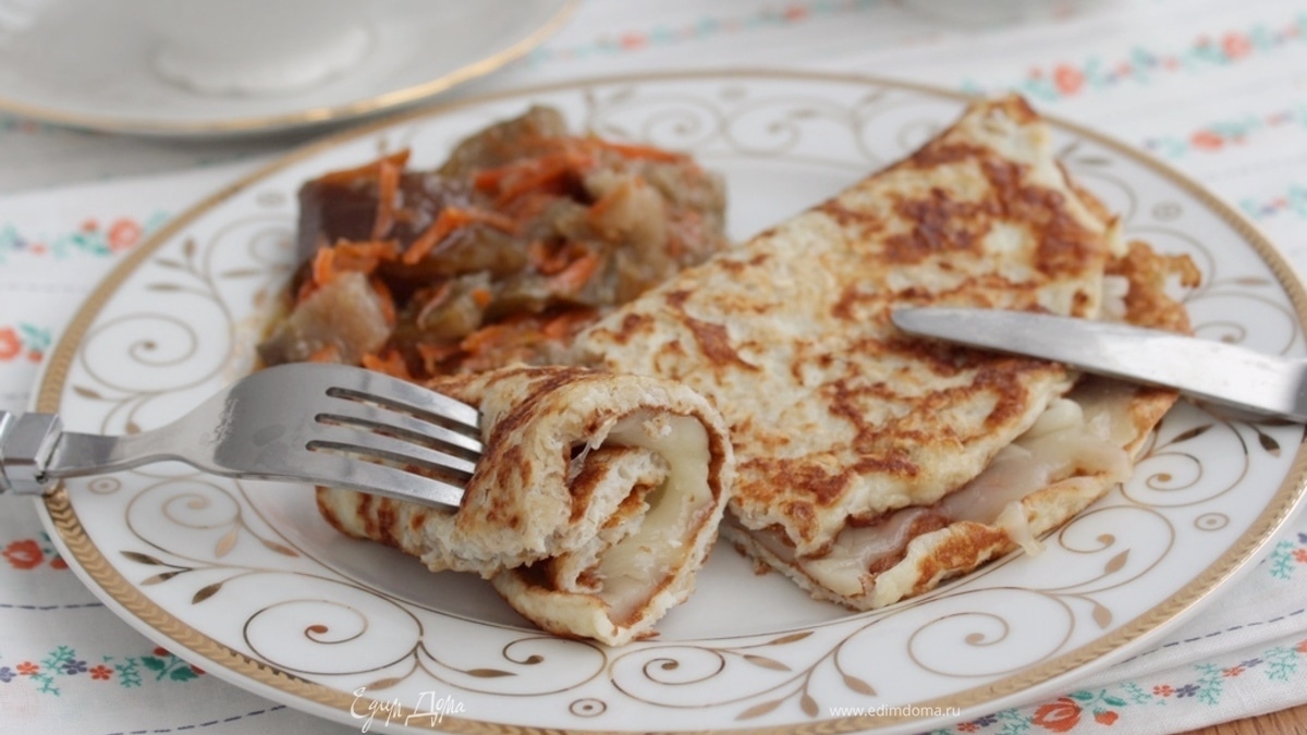 Затем складываем блин пополам и выкладываем на тарелку. - Шаг 5
