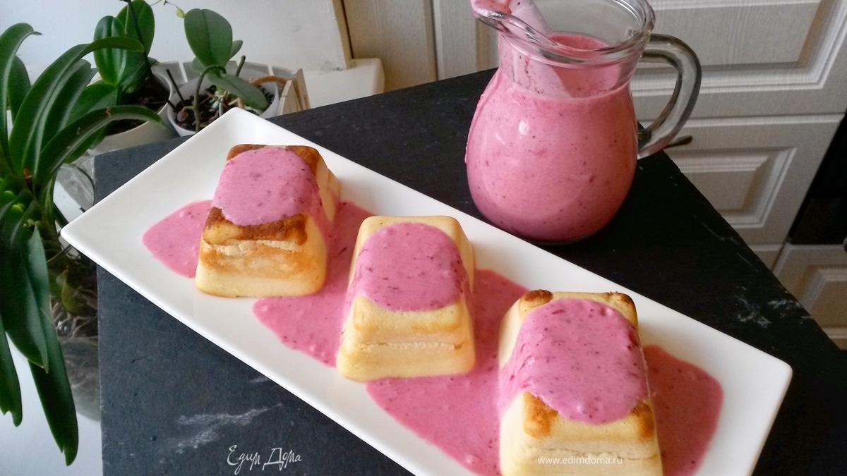 Готовую запеканку можно не доставать из формочек, а кушать в теплом виде ложкой, полив соусом. А можно охладить, убрав в холодильник на пару часов или на ночь. Тогда она легко выйдет из формочек и будет отлично держать форму. Приятного аппетита!