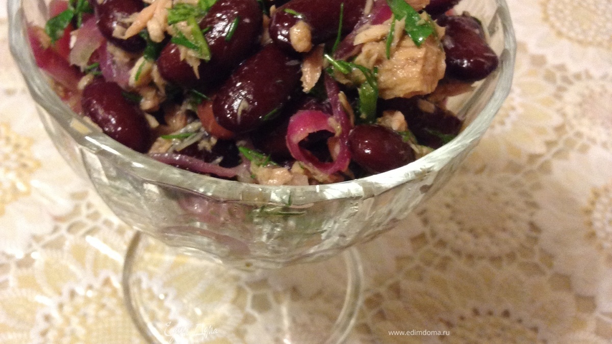 Фасоль промыть (фасоль можно сварить самостоятельно), добавить к луку, размять тунец добавить, зелень порубить и добавить все перемешать. Приятного аппетита!