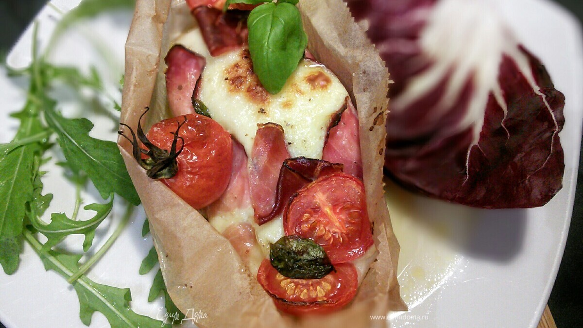 Капрезе из курицы, запеченный в пергаменте