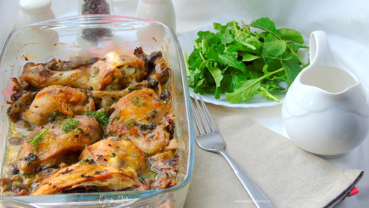 Курица в горчичном соусе с грибами