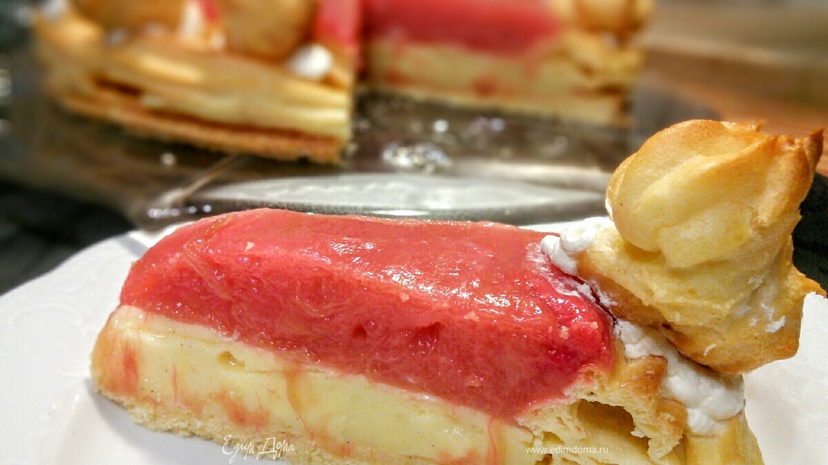 22Очень привлекательный торт! 😍 Особенно ревеневое пюре — думаю, его кислинка очень сочетается с заварным кремом! 😋