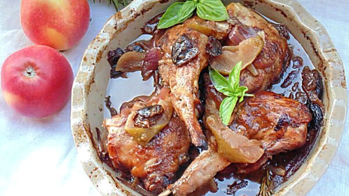 Ароматный кролик с яблоками, черносливом и красным луком — очень вкусное блюдо для праздничного стола!![]()