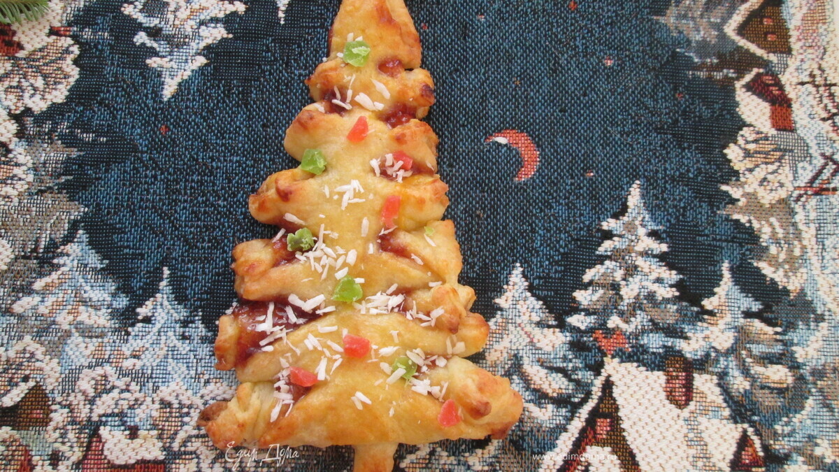 Елочка с джемом из творожно-слоеного теста