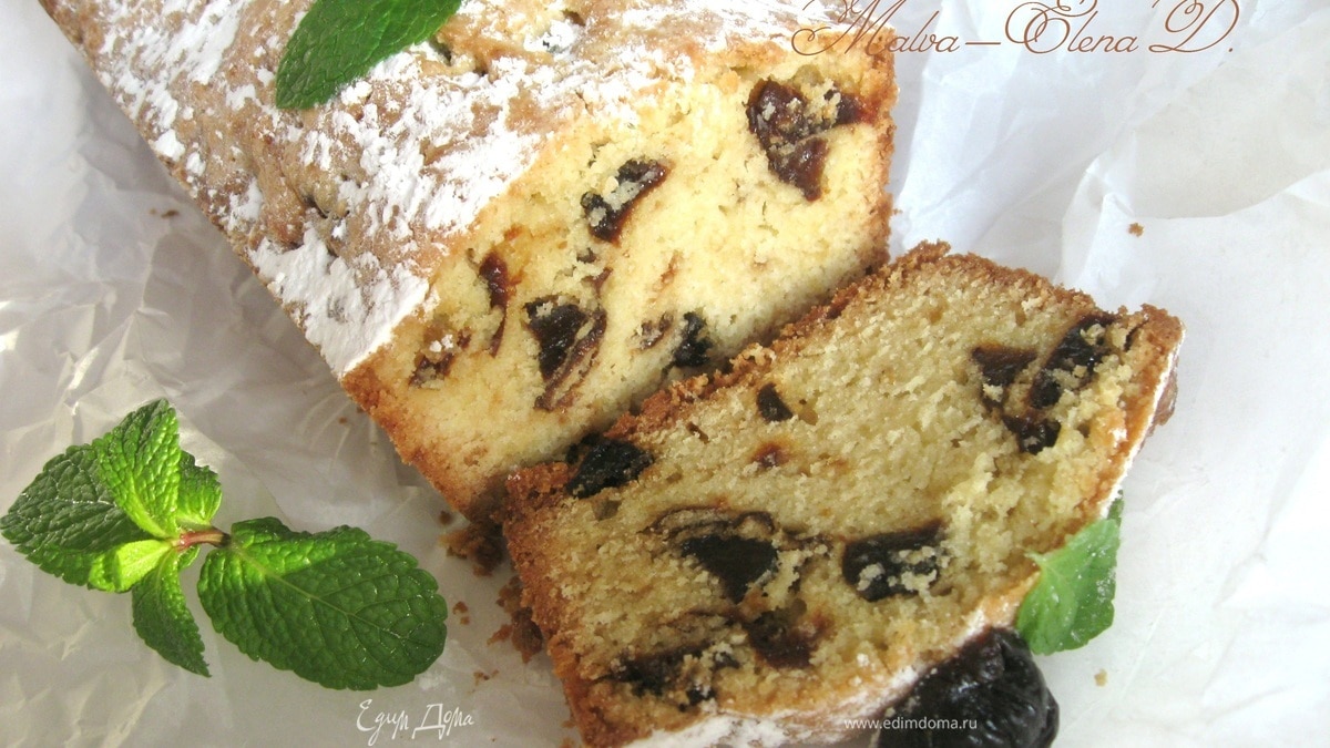 Зимой часто пеку кексы. Мне нравится их аромат и насыщенная текстура. Перед вами — один из вариантов. Чернослив, вымоченный в бренди, придает кексу интересный, пикантный вкус. Использовала форму размером 10х20 см.