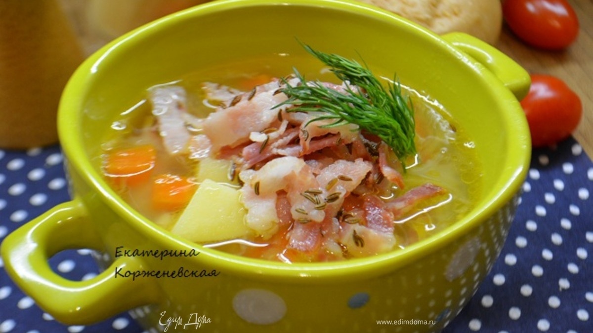 Этот суп подходит для холодных зимних деньков! Когда хочется согреться вкусным, ароматным супчиком! Просто идеальное сочетание бекона, тмина и квашеной капусты!!Уверяю, родные попросят добавки!