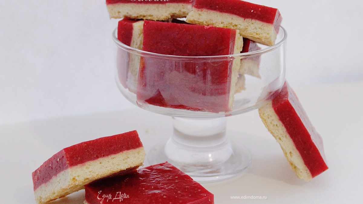 Простой и вкусный десерт с песочной основой и ягодным желе.