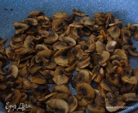 Обжарьте вместе с нарезанными грибами до золотистости.