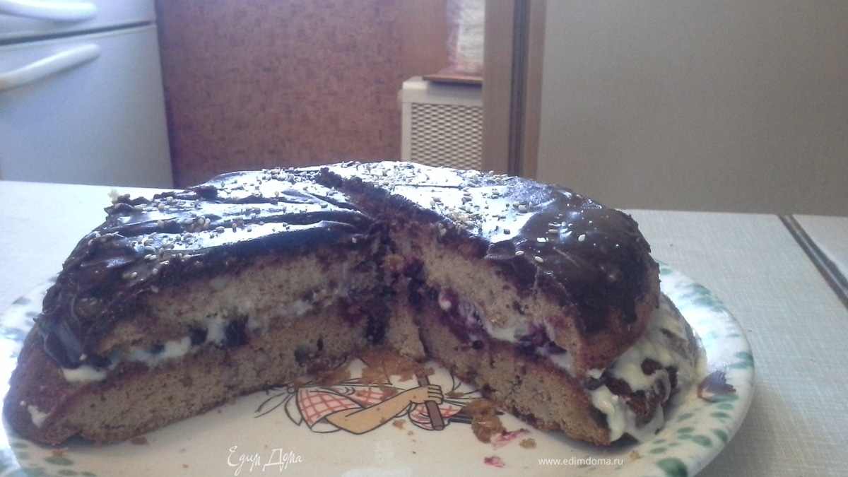 Торт выглядит красиво и эффектно, потому что я украсила его шоколадной глазурью и ягодами смородины.