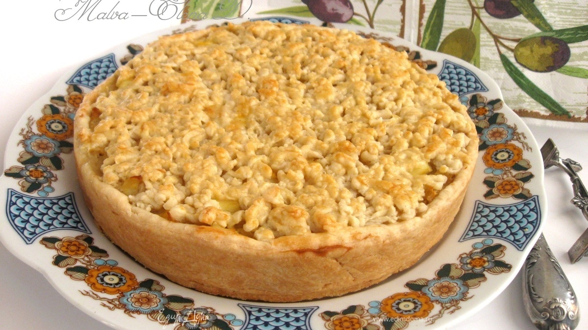 Тесто, натертое на терке, равномерно распределить по верху пирога. Слегка прижать верхний слой рукой. - Шаг 7
