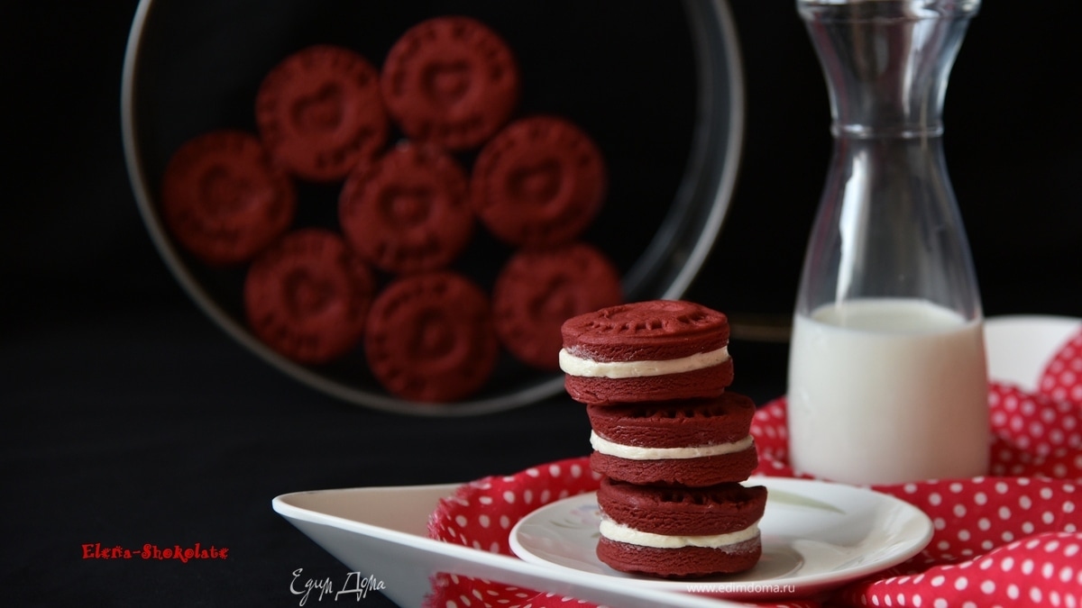 Поддержу «сердешную» тему на сайте и предложу Вашему вниманию такое печенье-сэндвич - яркое, эффектное, бархатистое. Готовится достаточно быстро, тесто не нуждается в предварительном охлаждении. Плотное, но мягкое, хорошо держит форму и не расплывается. Это тесто идеально подходит для штампов для печенья, отпечатки остаются четкими. Крем с добавлением творожного сыра, чуть солоноватый от сыра, но вместе с тем сладкий от шоколада — хорошо сочетается с плотным печеньем.