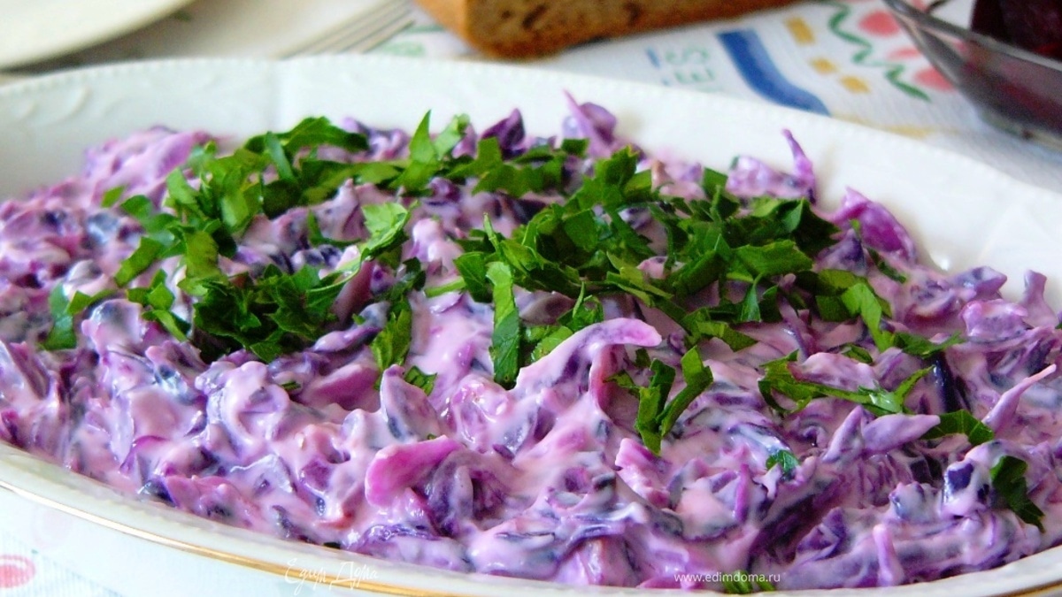 Салат из краснокочанной капусты с йогуртом и чесноком