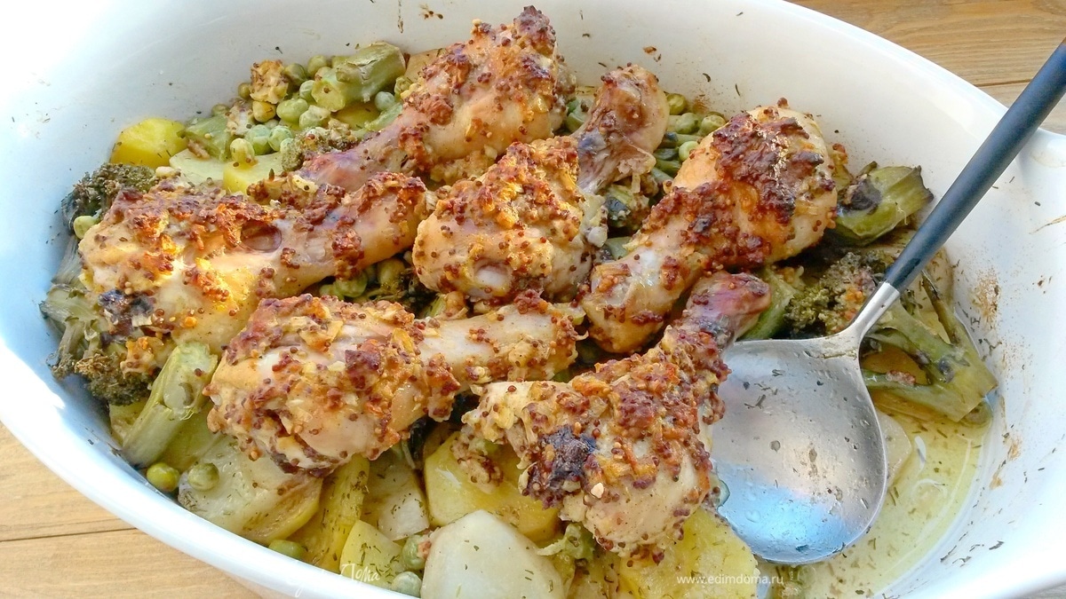 Курица в горчичном маринаде с овощами