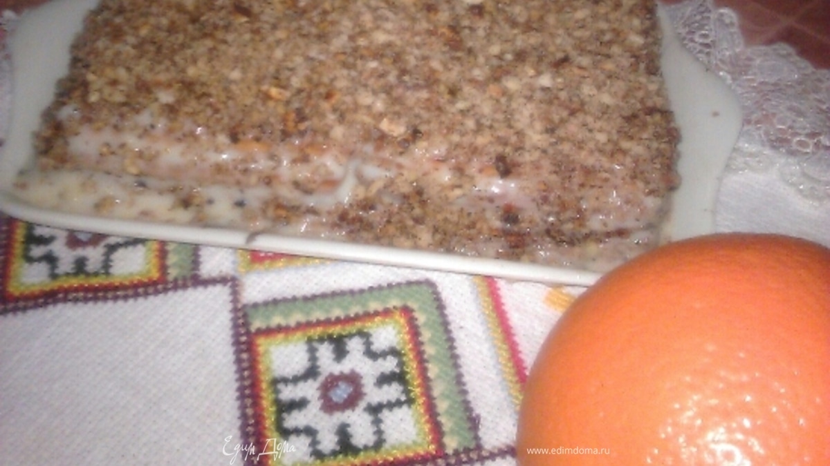 Второй слой печенья полностью обмакнуть в крем. Далее чередовать слои печенья и крема. Верх смазать остатками крема и присыпать орехами. - Шаг 13