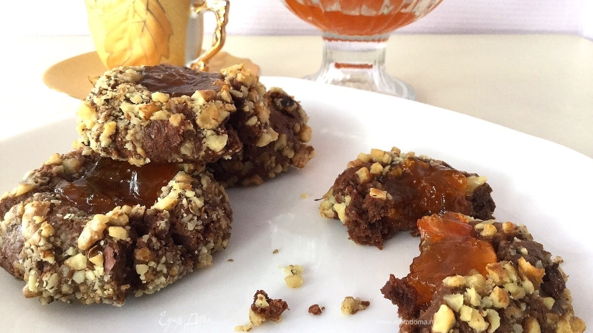Шоколадное печенье с орехами и джемом
